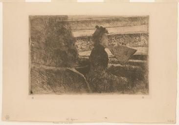 | Keywords: Mary Cassatt, The Opera, ca. 1881 - Library of Congress.tif Artwork en Print shows a woman seated in a loge three-quarter length portrait right profile holding a fan in left hand ca 1881 1 print soft-ground etching and aquatint on laid paper plate 19 7 x 29 6 cm on sheet 29 9 x 43 cm place of discovery object history exhibition history credit line accession number place of creation LOC-image ppmsca 38715 PD-old-auto 1926 Drawings by Mary Cassatt Images of Paris from the Library of Congress Interiors of opera houses in art Spectators in Paris Historical images of theaters in Paris Drawings of Paris Drawings of women Drawings of opera houses Theater boxes in art Portraits at three-quarter length Fans in art Fans of France 1881 in Paris 1881 drawings |