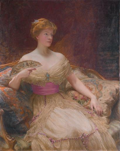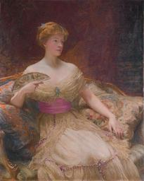 | Keywords: Mary Frances Mackenzie (née Linton 1870-1948), by Frank Dicksee.jpg en Mrs Austin Mackenzie oil on canvas 127 x 101 cm signed b r FRANK DICKSEE / 1918 1918 http //www sothebys com/en/auctions/ecatalogue/2016/victorian-pre-raphaelite-british-impressionist-l16132/lot 20 html Sotheby's creator Frank Bernard Dicksee other versions Custom license marker 2016 06 13 PD-old-70 Frank Bernard Dicksee 1918 | ||||