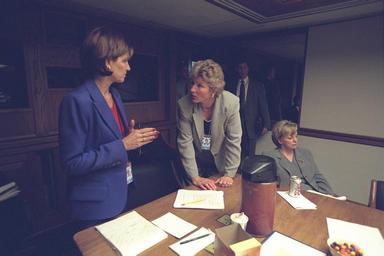 View Original:Mary_Matalin_Talks_with_Karen_Hughes_and_Lynne_Cheney_in_the_President's_Emergency_Operations_Center_(PEOC).jpg (3072x2048)