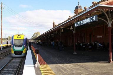 Keywords: 37 03S 143 45E Maryborough railway station is the terminal station of the Mildura line in Victoria, Australia. It serves the town of Maryborough. Opened 1874. attribution: Marcus Wong