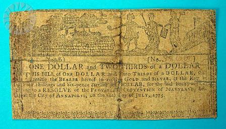 | Keywords: legendary coins legendarycoins numismatics money smithsonian probably public domain probablypublicdomain SI Neg. 2005-27394. Date: 9/1/2005...American currency was sometimes used to mold public opinion during the War for Independence. The high-minded Latin mottoes suggested by Ben Franklin had this intent. So did a series of small, printed messages on North Carolina currency issued between 1778 and 1780. But an early series of Maryland notes, including this specimen, stand out. .The note is worn, and, in common with several of its fellows, it was carefully stitched together, obscuring part of the design. But if we could see everything, we would see that, on the front of the note, a figure representing Great Britain receives a petition of the Continental Congress. It is handed to her by an America, who is simultaneously trampling on a scroll marked SLAVERY and holding aloft a Liberty cap on a pole, a beacon for American troops who are hastening to the scene from the right. .Meanwhile, George III (the figure at the center-left) is doing his best to set fire to an American city (perhaps Baltimore) already under attack from a British fleet. He's also trampling a copy of Magna Charta, just to underscore the point. Inscriptions along the sides read "AN APPEAL TO HEAVEN" and "PRO ARIS ET FOCIS" (For altars and hearths). The other side of the note conveys hope. Britain and America are shown achieving peace, with the reminder that "PAX TRIUMPHIS POTIOR" (Peace is preferable to victory)..The note was designed by Annapolis silversmith Thomas Sparrow in the summer of 1775. His initials are inscribed on the front and his full name on the back. This series of Maryland notes remains the most politically charged currency ever issued in the United States during wartime..Click here to view the obverse...Credit: Tom Mulvaney (Smithsonian Institution) SI Neg. 2005-27394. Date: 9/1/2005...American currency was sometimes used to mold public opinion during the War for Independence. The high-minded Latin mottoes suggested by Ben Franklin had this intent. So did a series of small, printed messages on North Carolina currency issued between 1778 and 1780. But an early series of Maryland notes, including this specimen, stand out. .The note is worn, and, in common with several of its fellows, it was carefully stitched together, obscuring part of the design. But if we could see everything, we would see that, on the front of the note, a figure representing Great Britain receives a petition of the Continental Congress. It is handed to her by an America, who is simultaneously trampling on a scroll marked SLAVERY and holding aloft a Liberty cap on a pole, a beacon for American troops who are hastening to the scene from the right. .Meanwhile, George III (the figure at the center-left) is doing his best to set fire to an American city (perhaps Baltimore) already under attack from a British fleet. He's also trampling a copy of Magna Charta, just to underscore the point. Inscriptions along the sides read "AN APPEAL TO HEAVEN" and "PRO ARIS ET FOCIS" (For altars and hearths). The other side of the note conveys hope. Britain and America are shown achieving peace, with the reminder that "PAX TRIUMPHIS POTIOR" (Peace is preferable to victory)..The note was designed by Annapolis silversmith Thomas Sparrow in the summer of 1775. His initials are inscribed on the front and his full name on the back. This series of Maryland notes remains the most politically charged currency ever issued in the United States during wartime..Click here to view the obverse...Credit: Tom Mulvaney (Smithsonian Institution) |