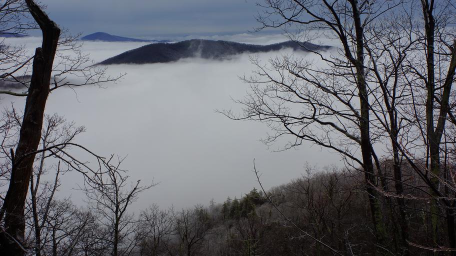 Keywords: Nature Mountain Trail National Park Trekking Hiking Skyline USA Hike Camping Campground Shenandoah Valley Sky Hawk hoarfrost Marys Rock Winter Fog
