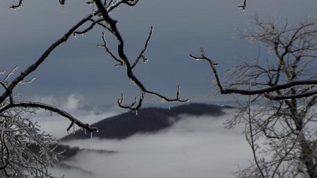 Keywords: Nature Mountain Trail National Park Trekking Hiking Skyline USA Hike Camping Campground Shenandoah Valley Sky Hawk hoarfrost Marys Rock Fog