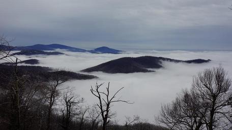 Keywords: Nature Mountain Trail National Park Trekking Hiking Skyline USA Hike Camping Campground Shenandoah Valley Sky Hawk hoarfrost Marys Rock Winter Fog