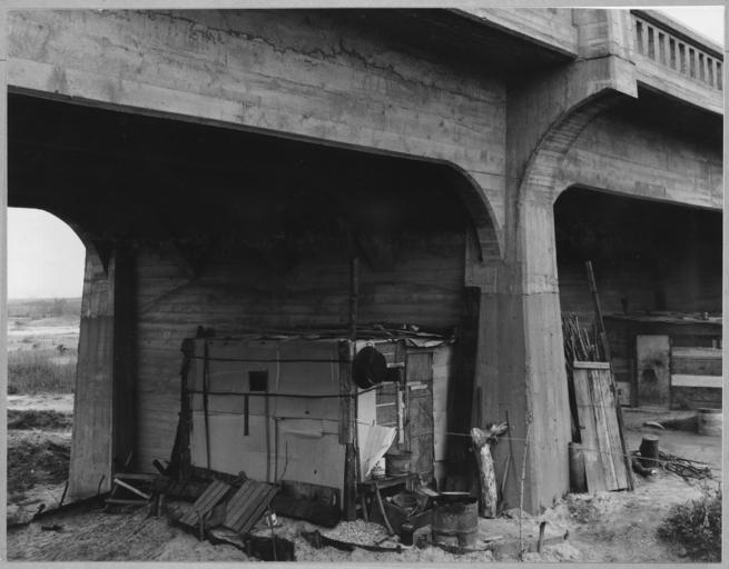 | Keywords: Marysville, Yuba County, California. Squatter shacks under D Street Bridge.... On edge of old Califo . . . - NARA - 521734.jpg Scope and content Full caption reads as follows Marysville Yuba County California Squatter shacks under D Street Bridge On edge of old California agricultural town There are 28 such shacks under the arches of this bridge occupied mainly as semi-permanent homes by single men The families live on the flat General notes 521734 Local identifier 83-G-41490 Department of Agriculture Bureau of Agricultural Economics Division of Economic Information ca 1922 - ca 1953 NARA-Author Lange Dorothea 1895-1965 Photographer 1372774 <br /> Still Picture Records Section Special Media Archives Services Division NWCS-S National Archives at College Park 8601 Adelphi Road College Park MD 20740-6001 1940-02-20 Record group Record Group 83 Records of the Bureau of Agricultural Economics 1876 - 1959 Record group ARC 412 Photographic Prints Documenting Programs and Activities of the Bureau of Agricultural Economics and Predecessor Agencies compiled ca 1922 - ca 1947 documenting the period ca 1911 - ca 1947 Series ARC 521048 File unit File unit ARC Variant control numbers NAIL Control Number NWDNS-83-G-41490 Other versions <gallery> File Marysville _Yuba_County _California _Squatter_shacks_under_D_Street_Bridge _On_edge_of_old_Califo_ _ _ _-_NARA_-_521734 tif tif File Marysville _Yuba_County _California _Squatter_shacks_under_D_Street_Bridge _On_edge_of_old_Califo_ _ _ _-_NARA_-_521734 jpg jpg </gallery> NARA-cooperation PD-USGov Squatter camp Bridges in California Concrete Marysville California Concrete bridges in the United States California Campgrounds in the United States California 1940 in California Dorothea Lange NARA images of Yuba County California Black and white photographs of California Black and white photographs of bridges in the United States California |