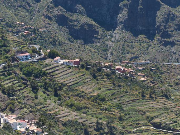 Keywords: masca plantations steep slope village terraces cultivation fields agriculture bergdorf homes slope steep eng mediterranean palm trees tenerife canary islands mountains teno mountains