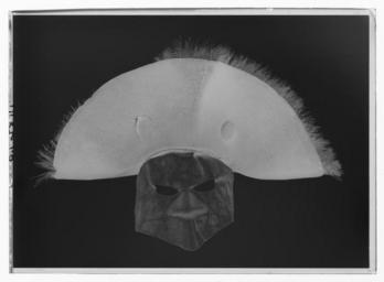 | Keywords: Mask från 1792-03-16 - Livrustkammaren - 1382-negative.tif LSH artwork sv Mask i vaxduk som är mycket vaxad och stel med två ögonöppningar bredd 40 mm Den är uppklippt mitt fram och ihopklistrad för att ge ansiktet dess form Skarven där tygerna ligger omlott är tydlig på baksidan men även mittpå framtill Masken slutar ungefär mitt på munnen och döljer inte hakan <br/>Anmärkning <br/>Masken är idag fastsydd och uppnålad på hatten Spår syns i maskens sidor av hål där kanske den ursprungliga snodden som höll masken uppe satt fästad Eventuellt satt den inte fast i hatten En maskstock av trä som troligen varit förlagan till masken finns idag i Skövde stadsmuseum inv nr 1233 original caption Mask från 1792-03-16 Mordet på Gustav III 1792-03-16 size mm 220 180 LRK Gustav III av Sverige Kring attentatet på Gustav III 1967 Gustav III - Kläder för tid och evighet 1998 place of origin original filename LN_B10950_013830 67440 inventory number LRK 31189 1382 CC0 Mask från 1792-03-16 - Livrustkammaren - 1382 tif Gustav III of Sweden's assassination outfit |