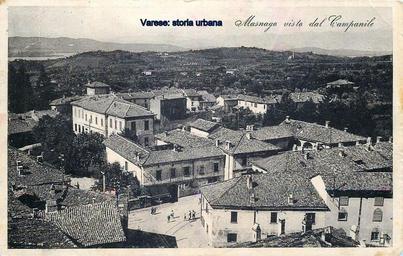 | Keywords: Panoramasul centro di Masnago ripreso dal campanile. In primo piano piazza Ferrucci. Dietro l'edificio scolastico si nota la torre medioevale di via Molteni. In lontananza le colline di Casciago e Morosolo che degradano dolcemente verso il lago di Varese. varese masnago |