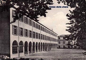 Keywords: La nuova ala del seminario arcivescovile di San Martino (ing. Giovanni Maggi, 1951), appena costruito in aderenza a villa Baragiola (sul fondo). varese masnago