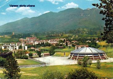 Keywords: Vista sugli impianti sportivi, a destra il palazzetto dello sport, a sinistra le tribune dello stadio. In secondo piano la crescente urbanizzazione di Avigno. varese masnago