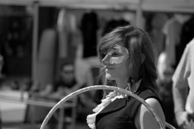Keywords: masquerade blackandwhite black white monochrome street streetphotography lady woman girl female summer canada britishcolumbia bc okanagan kelowna blockparty outdoor