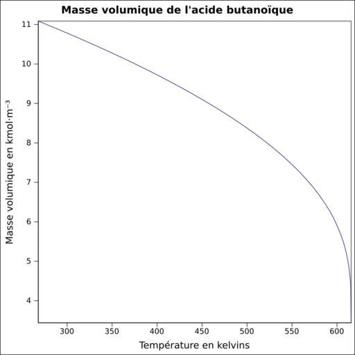 | Keywords: Masse volumique acide butanoïque.svg fr Masse volumique calculée d'après <br/> Robert H Perry et Donald W Green Perry's Chemical Engineers' Handbook McGraw-Hill USA 1997 7e éd 2400 p ISBN 0-07-049841-5 p 2-94 own Epop 2010-06-27 Created with Gnumeric Density curves |
