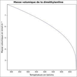 | Keywords: Masse volumique diméthylaniline.svg fr Masse volumique calculée d'après <br/> Robert H Perry et Donald W Green Perry's Chemical Engineers' Handbook McGraw-Hill USA 1997 7e éd 2400 p ISBN 0-07-049841-5 p 2-94 own Epop 2010-06-27 Created with Gnumeric Density curves N N-Dimethylaniline |