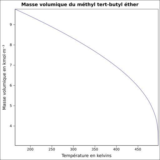 | Keywords: Masse volumique méthyl tert-butyl éther.svg fr Masse volumique calculée d'après <br/> Robert H Perry et Donald W Green Perry's Chemical Engineers' Handbook McGraw-Hill USA 1997 7e éd 2400 p ISBN 0-07-049841-5 p 2-94 own Epop 2010-06-27 Created with Gnumeric Density curves |