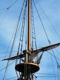 Keywords: mast pirate crows nest sky ship rigging halyards sail