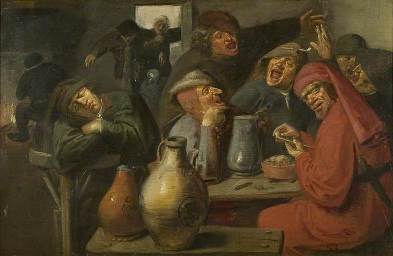 Keywords: Master of the Large Jars - Peasants Carousing (ca.1635).jpg Master of the Large Jars Maître des grandes jarres Netherlands century 17 formerly attributed to Title Interior of a Tavern Peasants Carousing Scène de taverne <br/> alternate title Seven Men Carousing in an Inn 1635 Oil on panel cm 27 3 40 9 Bristol Museum and Art Gallery accession number K1806 http //www vads ac uk/flarge php uid 88889 The National Inventory of Continental European Paintings object history purchased with the assistance of the Friends of Bristol Art Gallery 1948 Acquired by Frost and Reed from Col R E M Russell Ledbury by 1948 credit line exhibition history http //www bbc co uk/arts/yourpaintings/paintings/interior-of-a-tavern-peasants-carousing-188777 BBC Your Paintings Other versions PD-old-100 Master of the Large Jars Bristol City Museum and Art Gallery 17th-century genre paintings 17th-century oil on panel paintings Drinkware in art Paintings of peasants Images from BBC Your Paintings |