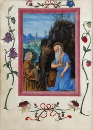 | Keywords: Master of the Ore Landriani and Giovan Battista de Lorenz - Gian Giacomo Trivulzio with Saint Hieronymus in the Book of hours of Gian Giacomo Trivulzio - Google Art Project.jpg The Book of Hours of Gian Giacomo Trivulzio belonged to this Milanese condottiero a passionate bibliophile who was born around 1440 in Milan and died in 1518 in Châtres Seine-et-Oise today Arpajon It keeps the use of Rome and It's printed in fine round humanistic font leaving ample room to host floral decoration but the most characteristic scenes of the codex are presented in tables framed by moldings painted and in some cases by a golden fence The technique is excellent and the illustrations reach a remarkable artistic level The book reproduced the coat of arms of the owner and his portrait is also close to St Jerome the saint who he must be devoted to commons date commons medium commons dimensions commons institution commons location commons references commons object_history commons exhibition_history commons credit_line commons inscriptions commons notes commons accession_number commons source commons permission commons other_versions commons zoom core title Gian Giacomo Trivulzio with Saint Hieronymus in the Book of hours of Gian Giacomo Trivulzio core date dateCreated 1500/1510 core format w13 6 x h19 cm Complete core type Manuscript core relation http //www flg es/biblioteca/biblioteca htm art artist_nationality Italian c-069361c8 creator painter_and_handwriting Master of the Ore Landriani and Giovan Battista de Lorenz google display_date 1500/1510 google is_artproject TRUE google is_gigapixel FALSE google is_secured TRUE google partner/id 00000000069361c8 google partner/name Museo Lázaro Galdiano google picasa_token RrK2IvxD_-iRXUSI2D_bm6Elew0 special url_id FgEcv8TilNCREg special partner/name_no_lang Museo Lázaro Galdiano PD-old-100-1923 Google Art Project works by Master of the Ore Landriani and Giovan Battista de Lorenz Manuscripts in Museo Lázaro Galdiano 16th-century illuminated manuscripts Aquilegia in medieval miniatures Viola tricolor in art Strawberries in art Medieval miniatures of Saint Jerome Praying in medieval miniatures Renaissance profile drawings of men Gian Giacomo Trivulzio Paintings of Saint Jerome |