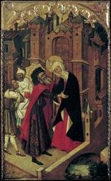 | Keywords: Master of Retascón - Embrace at the Golden Gate - Google Art Project.jpg Active in Aragon first half of 15th century 1400 1450 Master 588752 of Retascón Active in Aragon first half of 15th century /collection/museu-nacional-dart-de-catalunya/artwork/embrace-at-the-golden-gate-master-of-retascon/591583/ Master of Retascón /artist/master-of-retascon/4129390/ 4129390 /collection/museu-nacional-dart-de-catalunya/ Museu Nacional d'Art de Catalunya - MNAC Barcelona 497131 http //www mnac cat/ 12/28/2011 4 42 55 PM /collection/museu-nacional-dart-de-catalunya/artwork/embrace-at-the-golden-gate-master-of-retascon/591583/ 1410 Religion Tempera and gold leaf on wood True 1066 591583 True 1425 Around 1410-1425 /collection/museu-nacional-dart-de-catalunya/level/ground-floor/2552108/ Ground floor 3/24/2012 6 26 08 AM 064033-000 http //art mnac cat/fitxatecnica html;jsessionid inventoryNumber 064033-000 lang en Museu Nacional d'Art de Catalunya Painting 1410 1430 w631 x h1066 x d68 cm Around 1410-1425 False 0 611328125 Object /collection/museu-nacional-dart-de-catalunya/level/ground-floor/2552108/room-24/588598/ Room 24 embrace-at-the-golden-gate-master-of-retascon Embrace at the Golden Gate e 631 Muntadas Collection acquired 1956 064033-000 Tempera and gold leaf on wood Religion special url_id rgG9i5t4n6XgiA PD-old-100-1923 1450 Gothic paintings in the Museu Nacional d'Art de Catalunya Google Art Project works by Master of Retascón |