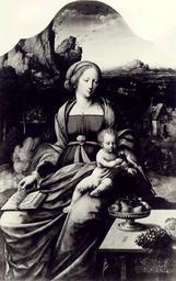 | Keywords: Master with the Parrot.JPG Madonna and Child with a parrot against the background of landscape Madonna z Dzieciątkiem i papugą na tle krajobrazu Master with the Parrot Antwerp first half of the 16th century oil canvas cm 111 5 72 Catalogue of paintings removed from Poland by the German occupation authorities during the years 1939-1945 1 Foreign paintings / comp Władysław Tomkiewicz ; Ministry of Culture and Art Warsaw 1950 Editor Ministry of Culture and Art See also http //kolekcje mkidn gov pl/ Department of National Heritage Wartime losses an official webpage of Polish Ministry of Culture Art and National Heritage 1487 Owned by The J and K Bartoszewicz City Museum of History and Art in Łódź lost 1939/1945 PD-Art PD-Art 16th-century foreign paintings lost in Poland during World War II Missing items from the Art Museum in Łódź Renaissance paintings of Madonna and Child Parrots in paintings People with parrots in art |
