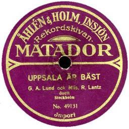 Keywords: Matador49131.jpg Matador Swedish record label sold 1913-17 and 1923-24 by the Swedish mail order firm Åhlén Holm Picture source the collection of Fredrik Tersmeden Lund Sweden PD-old Location not applicable Record labels Uppsala