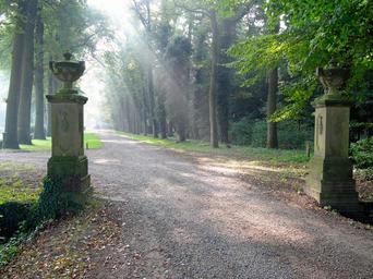 Keywords: mataram manor dalfsen entry portal columns decor way road ray of light sunlight park