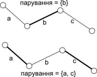 Keywords: Matching (graph theory).png uk Збільшення па ування <math> b </math> че ез знаходження шляху озши ення <math> a b c </math> і застосування симет ичної ізниці для двох множин У висліді маємо нове па ування <math> a c </math> потужність якого на одиницю більша own Igor Yalovecky Cc-zero Uncategorized 2014 December 4 |