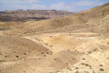 | Keywords: Matmor Formation 070213.jpg en Matmor Formation Jurassic exposed in Makhtesh Gadol southern Israel Southern wall of the makhtesh in the background 2013-07-02 08 54 43 own Wilson44691 cc-zero Uploaded with UploadWizard Negev Jurassic geology Marl |