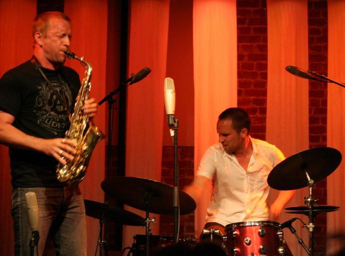 Keywords: Mats Gustafsson and Paal Nilssen-Love.JPG en Saxophone player Mats Gustafsson and drummer Paal Nilssen-Love on the stage with the free jazz group The Thing at Kongsberg Jazzfestival 2008 In Kongsberg Norway 2008-07-03 own Nittentrikken cc-zero Uploaded with UploadWizard Drummers