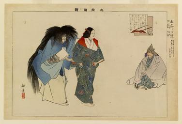 | Keywords: Matsuke Heikichi - Nogaku zue - Walters 95248.jpg Walters Art Museum artwork Creator Daikokuya Matsuki Heikichi en When the ghost of the great beauty and poet Ono no Komachi asks a wandering priest right to pray for her soul she is held back by the ghost of a former suitor Shii no Shosho He had sacrificed his life in a vain effort to prove his love and cannot bear to have her leave him again Komachi Would you still have me suffer The tortures of hell Shosho Even when we suffered them together The pains were grievous But if you alone attain The Way of the Buddha You will add to the weight I bear Yet another cloak of sorrow Piling grief on grief ca 1899 Meiji pigments mulberry paper cm 25 37 2 accession number 95 248 26750 Mr and Mrs C R Snell Jr date and mode of acquisition unknown Walters Art Museum Gift of Mr and Mrs C R Snell Jr 1989 Signature Kogyo place of origin Tokyo Japan Walters Art Museum license PD-old-auto 1927 2D Japanese prints in the Walters Art Museum Historic samurai prints Daikokuya Matsuki Heikichi Kōgyo Tsukioka Ono no Komachi |