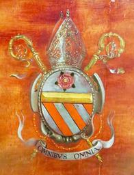 | Keywords: Matthæus Yrsselius' våben.jpg Våben tilhørende abbed ved Sint-Michiels Kloster i Antwerpen Matthæus Yrsselius 1541-1629 detalje fra maleri af Peter Paul Rubens Statens Museum for Kunst København own 2016-02 Orf3us PD-old-100 Coats of arms of abbots Paintings by Rubens in Statens Museum for Kunst Copenhagen |