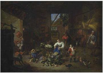 | Keywords: Mattheus van Helmont - A woman selling vegetables in a barn with a boy feeding chickens.jpg Artwork Creator Mattheus van Helmont en A woman selling vegetables in a barn with a boy feeding chickens 1645-1679 http //www christies com/lotfinder/paintings/matheus-van-helmont-a-woman-selling-vegetables-5765978-details aspx pos 43 intObjectID 5765978 sid Oil on canvas size cm 73 103 object history credit line Sold at Christie's on 30 January 2014 in New York Lot 265 accession number PD-old-100 Mattheus van Helmont Farms in art 17th-century way of life in painting |
