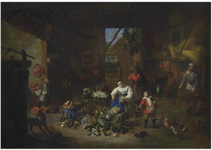 | Keywords: Mattheus van Helmont - A woman selling vegetables in a barn with a boy feeding chickens.jpg  Artwork Creator Mattheus van Helmont en A woman selling vegetables in a barn with a boy feeding chickens 1645-1679 http //www christies com/lotfinder/paintings/matheus-van-helmont-a-woman-selling-vegetables-5765978-details aspx pos 43 intObjectID 5765978 sid Oil on canvas size cm 73 103 object history credit line Sold at Christie's on 30 January 2014 in New York Lot 265 accession number PD-old-100 Mattheus van Helmont Farms in art 17th-century way of life in painting |