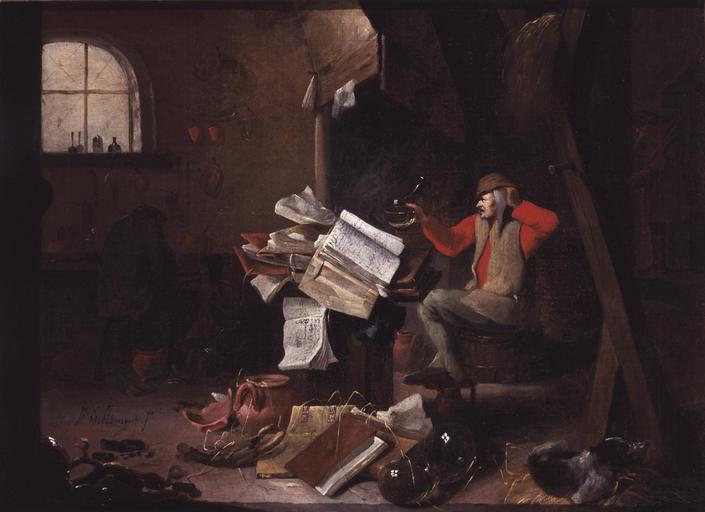 Keywords: Mattheus von Helmont Alchemist at Work.jpg century 17 oil canvas in 59 43 Institution Chemical Heritage Foundation object history exhibition history credit line Gift of Roy Eddleman CHF Collections http //www chemheritage org/ Chemical Heritage Foundation Photograph by Will Brown Signed lower left quadrant MV Hellemont f Underlining indicates letter difficult to discern There are also illegible marks made with the same paint located underneath the signature Image downloaded with permission from the Chemical Heritage Foundation as part of the Wikipedian in Residence initiative CHF-cooperation PD-old-100-1923 cc-by-3 0 Chemical Heritage Foundation accession number FA 2000 003 036 Alchemists by Mattheus van Helmont Alchemists from the Netherlands Alchemists from Belgium 17th-century oil on canvas paintings Men in rooms in art Chemical Heritage Foundation Images from the Chemical Heritage Foundation Men with books in art |