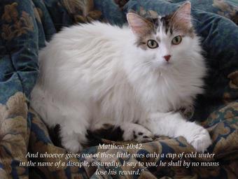 | Keywords: god jesus jesus christ jesuschrist god the father godthefather holy spirit holyspirit holy church scripture angels faith prayer pray hope peace love alive forevermore aliveforevermore angel christian righteous king of kings kingofkings heaven archangel god is love godislove prince of peace princeofpeace creator christ the creator christthecreator god the creator godthecreator third heaven thirdheaven awesome alpha and omega alphaandomega wonderful glorious omnipotent almighty bible holy bible holybible armor of god armorofgod glorify hallelujah judgment judgment day judgmentday usa united states of america unitedstatesofamerica cats cat cold water coldwater little one littleone word of god wordofgod the lord is my shepherd thelordismyshepherd eternity confess repent repentance humble sinner humble yourself humbleyourself saved lost found salvation praise god praisegod amen word became flesh wordbecameflesh be strong bestrong courage spiritual warfare animal pet indoor New King James Version (NKJV)0 And whoever gives one of these little ones only a cup of cold water in the name of a disciple, assuredly, I say to you, he shall by no means lose his reward.” Romans 8:28 New King James Version (NKJV) And we know that all things work together for good to those who love God, to those who are the called according to His purpose. New King James Version (NKJV)0 And whoever gives one of these little ones only a cup of cold water in the name of a disciple, assuredly, I say to you, he shall by no means lose his reward.” Romans 8:28 New King James Version (NKJV) And we know that all things work together for good to those who love God, to those who are the called according to His purpose. |