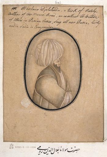 Keywords: Mauláná Jalál al-Dín..jpg en Drawing album Portrait Mauláná Jalál al-Dín Drawn and tinted on paper Jalal al-Din Rumi and Hafiz Mughal India early 19th century Ink and watercolour on paper The posthumous portraits of these two famous Persian poets have been placed in an album of drawings and paintings of dignitaries and kings The English inscriptions on the left hand page describes Rumi 1207-73 'Mowlana Djelaleddin a Turk of Natoly Anatolia author of the Mesnevi mathnavi Rumi an excellent treatise of ethics in Persian verses sung all over Persia Turkey and in India in companies The English inscriptions above the drawing on the right misidentified the poet Hafiz 1325-90 whose name appears in Persian in the lower margin While the pose of Hafiz and the book next to him identify him as a poet these attributes are not specific to him alone By contrast the enormous turban and sleeves profile pose and wrinkled face are traits that regularly appear in posthumous portraits of the mystical poet Rumi He was Persian by birth but settled in Konya in Anatolia 19thC early http //www britishmuseum org/research/search_the_collection_database/search_object_details aspx objectid 231633 partid 1 searchText mughal fromADBC ad toADBC ad numpages 10 images on orig 2fresearch 2fsearch_the_collection_database aspx currentPage 81 author PD-Art Rumi |