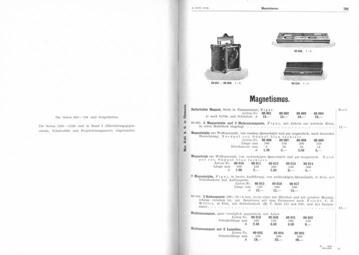 | Keywords: Max-kohl 0784.jpg Page from a catalog for teaching equipment in physics filename incl page number Physikalische Apparate Preisliste Nr 50 Band III Magnetismus Elektrizität Radioaktivität Verschiedenes ~ 1912 Max Kohl A G Chemnitz i S PD-old Max Kohl AG L 50 III |