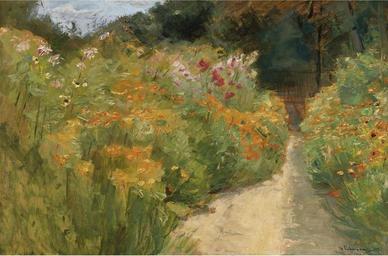| Keywords: Max Liebermann - Blumenstauden im Wannseegarten.jpg Artwork Creator Max Liebermann 1919 oil cardboard cm 49 5 74 5 object history Max Böhm Berlin acquired by 1930 Sale Rudolph Lepke Kunst-Auktion-Haus Berlin Auktion der Sammlung Max Böhm 28th January 1931 lot 26 illustrated as Stauden im Garten zu Wannsee incorrectly listed as oil on canvas sold for 3 600 Marks <br/>Mr Mendel Germany brought to the United States circa 1938-40 <br/>Estate of Marianne Mendel widow of the above<br/>Mrs Ruth Alexander Rego Park New York inherited from the above in 1983 <br/>Private Collection New York inherited from the above in 2008 <br/>Acquired from the above by the present owner exhibition history Berlin Preussische Akademie der Künste Sammlung Max Böhm 1930 no 26 credit line M Liebermann 1919 lower right signature and date accession number http //www sothebys com/en/auctions/ecatalogue/2010/impressionist-modern-art-evening-sale-l10002/lot 38 html Sotheby's London 03 February 2010 lot 38 PD-old-auto-1923 1935 1910s paintings by Max Liebermann Paintings of gardens 1919 paintings Images from Sotheby's Auctions by Rudolph Lepke |