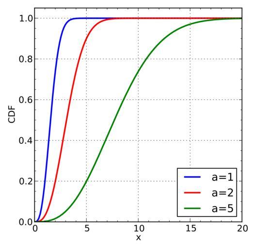 | Keywords: Maxwell-Boltzmann distribution cdf.svg  en Cumulative distribution function of Maxwell-Boltzmann distribution 2012-10-11 14 46 25 own Krishnavedala validSVG Python source code <syntaxhighlight lang python> from scipy special import erf from numpy import from matplotlib pyplot import cdf lambda a x erf x/ a sqrt 2 - x exp -x x/ 2 a a sqrt 2/pi /a fig figure figsize 5 5 ax fig add_subplot 111 ax grid True ax minorticks_on x linspace 001 20 150 ax plot x cdf 1 x label r a 1 linewidth 2 ax plot x cdf 2 x 'r' label r a 2 linewidth 2 ax plot x cdf 5 x 'g' label r a 5 linewidth 2 ax set_ylim 0 1 05 ax set_xlim 0 20 ax set_xlabel r'x' ax set_ylabel r'CDF' ax legend loc 4 fig savefig Maxwell-Boltzmann_distribution_cdf svg bbox_inches tight pad_inches 15 </syntaxhighlight> boc cc-zero Uploaded with UploadWizard Created with Matplotlib Maxwell “Boltzmann distributions |