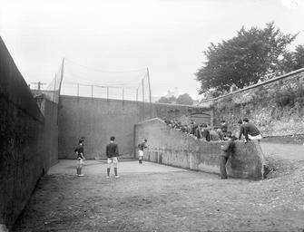 | Keywords: boys handball play court outdoors ball school 1931 1930s thirties a.h. poole ahpoole arthur henri poole arthurhenripoole poole collection poolecollection glass negative glassnegative saturday 30th handball court handballcourt good counsel college goodcounselcollege new ross newross wexford ireland leinster location identified locationidentified fr. conlan frconlan conlan thomas a. conlan thomasaconlan national library of ireland nationallibraryofireland blackandwhite monochrome outdoor black and white All we had on this photo was "Rev. Father Conlon, Handball Court" until we got this great information from Brendan Grogan: "Checked out the photograph in question, dated 30th May 1931. It's from the old Good Counsel College off Chapel Lane in New Ross, 1890-1980. It was commissioned by Fr. Thomas A. Conlan, OSA, Rector of the college from 1930 to 1942. The group of photographs, most of which mention Fr. Conlan, in the NLI Poole collection date from the above period and comprise 15 photographs of various groups of students, clerics and sports activities. The ball alley is still in existence today, albeit somewhat modified and currently unused and dilapidated. Thanks, Brendan. See here for photo Nov. 2012." Date: Saturday, 30 May 1931 NLI Ref.: P_WP_3810 All we had on this photo was "Rev. Father Conlon, Handball Court" until we got this great information from Brendan Grogan: "Checked out the photograph in question, dated 30th May 1931. It's from the old Good Counsel College off Chapel Lane in New Ross, 1890-1980. It was commissioned by Fr. Thomas A. Conlan, OSA, Rector of the college from 1930 to 1942. The group of photographs, most of which mention Fr. Conlan, in the NLI Poole collection date from the above period and comprise 15 photographs of various groups of students, clerics and sports activities. The ball alley is still in existence today, albeit somewhat modified and currently unused and dilapidated. Thanks, Brendan. See here for photo Nov. 2012." Date: Saturday, 30 May 1931 NLI Ref.: P_WP_3810 |