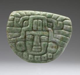 | Keywords: Mayan - Face Pendant - Walters 2009208 - View A.jpg Jadeite is a dense alumina silicate of the pyroxene mineral family The preferred stone for denoting status and sacredness throughout Mesoamerica its value was based on its relative scarcity the polished stone's bright shiny surface its translucent colors ranging from light green to a rich blue-green and the challenge of carving the stone due to the stone's hardness In addition to the impressive visual qualities and scarcity jadeite was symbolically linked to the miracle of the earth's fecundity the maize god and the life-giving promise of green plants and blue-green water Together these attributes made jadeite the most valuable of all materials to adorn the nobility and the gods The Maya also fashioned adornments from similar green-colored stones whose visual properties resemble those of jadeite It is difficult to discern the correct geological identification of these adornments without technical analyses This pendant exemplifies the aesthetic variety and technical expertise of Late Classic Maya jadeite carvers The pendant is carved in the standardized frontal rendering of a noble person wearing the formal head gear of the ruling elite with unique features that document more than five hundred years of the jadeite carver's art The flat pendants exemplify Middle and Late Classic figural pendant styles with the distinctive headdresses and impressive jadeite earflares and bead necklaces worn by the nobility AD 650-850 Late Classic jadeite albite cm 9 3 11 8 1 8 accession number 2009 20 8 80163 Throckmorton Fine Arts New York date and mode of acquisition unknown John G Bourne 1990s by purchase Walters Art Museum Gift of John Bourne 2009 place of origin Honduras Walters Art Museum license Maya art in the Walters Art Museum Media contributed by the Walters Art Museum needs category review Maya jade beads and pendants |