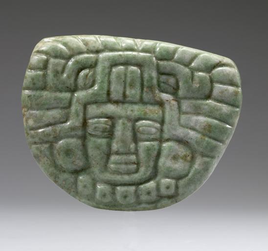 Keywords: Mayan - Face Pendant - Walters 2009208 - View A.jpg Jadeite is a dense alumina silicate of the pyroxene mineral family The preferred stone for denoting status and sacredness throughout Mesoamerica its value was based on its relative scarcity the polished stone's bright shiny surface its translucent colors ranging from light green to a rich blue-green and the challenge of carving the stone due to the stone's hardness In addition to the impressive visual qualities and scarcity jadeite was symbolically linked to the miracle of the earth's fecundity the maize god and the life-giving promise of green plants and blue-green water Together these attributes made jadeite the most valuable of all materials to adorn the nobility and the gods The Maya also fashioned adornments from similar green-colored stones whose visual properties resemble those of jadeite It is difficult to discern the correct geological identification of these adornments without technical analyses This pendant exemplifies the aesthetic variety and technical expertise of Late Classic Maya jadeite carvers The pendant is carved in the standardized frontal rendering of a noble person wearing the formal head gear of the ruling elite with unique features that document more than five hundred years of the jadeite carver's art The flat pendants exemplify Middle and Late Classic figural pendant styles with the distinctive headdresses and impressive jadeite earflares and bead necklaces worn by the nobility AD 650-850 Late Classic jadeite albite cm 9 3 11 8 1 8 accession number 2009 20 8 80163 Throckmorton Fine Arts New York date and mode of acquisition unknown John G Bourne 1990s by purchase Walters Art Museum Gift of John Bourne 2009 place of origin Honduras Walters Art Museum license Maya art in the Walters Art Museum Media contributed by the Walters Art Museum needs category review Maya jade beads and pendants |