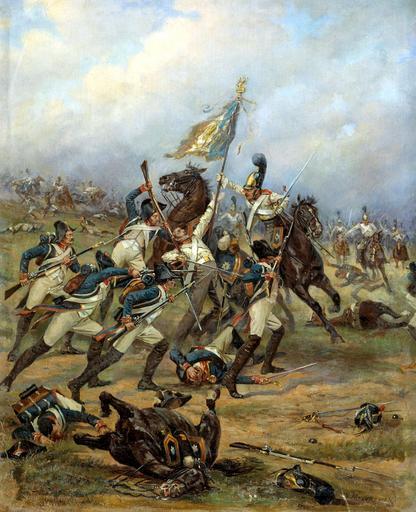 | Keywords: Mazurovsky - Fight for the banner (1805), 1910-12.jpg Artwork en Fight for the banner Feat of Cavalry Guard at the battle of Austerlitz 1910-1912 en Capture of a French regiment's eagle by the cavalry of the Russian guard at Austerlitz The French lost only one eagle at the battle of Austerlitz and this happened when the Russian horse Guard caught the 4th Line regiment in the open and charged them ru Захват лейб-гва дии Конным полком знамени 4-го ф анцузского линейного полка под Аусте лицем в 1805 году 1910-12 Холст масло http //en gallerix ru/album/200-Russian/pic/glrx-291052246 creator Viktor Mazurovsky 1910-1912 oil canvas музей-пано ама «Бо одинская битва» в оскве http //www zinnfiguren ru/austerlitz1805/rpage01 htm или Б янский областной художественный музей http //www art-catalog ru/picture php id_picture 8187 PD-Art PD-RusEmpire Viktor Mazurovsky Battle of Austerlitz Paintings of cavalry in battle 1912 paintings from Russia Paintings in the Military-historical Museum of Artillery Engineer and Signal Corps Cavalry of the Napoleonic period Horses in warfare Paintings of horses in warfare Borodinskaya panorama museum |