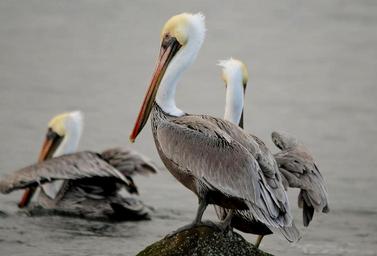 | Keywords: mbnms monterey bay roy lowe/usfws loweusfws conservation success brown pellican gullet ddt recovery nesting rebound abundant birds birding bird animal outdoor aquatic bird Conservation success: In the early 1970s, brown pelicans were almost extinct. The pesticide DDT had made its way into the ocean food web through storm runoff, and when pelicans ate contaminated fish, the eggs they laid had perilously thin shells. But the ban of DDT and other pesticides has given birds like the brown pelican the opportunity to rebound. Now these birds can be found in abundance in many West Coast national marine sanctuaries! Photo Credit: Roy W. Lowe/USFWS Conservation success: In the early 1970s, brown pelicans were almost extinct. The pesticide DDT had made its way into the ocean food web through storm runoff, and when pelicans ate contaminated fish, the eggs they laid had perilously thin shells. But the ban of DDT and other pesticides has given birds like the brown pelican the opportunity to rebound. Now these birds can be found in abundance in many West Coast national marine sanctuaries! Photo Credit: Roy W. Lowe/USFWS |