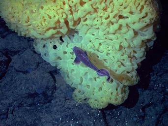 | Keywords: monterey bay noaa/mbari noaambari mbnms yellow ruffle sponge deep sea fish ocean ecosystems california coast davidson seamount texture indoor food Mountains below the surface: Located in Monterey Bay National Marine Sanctuary, Davidson Seamount is an underwater mountain. A submerged volcano rising some 7,250 feet above the sea floor, it's one of the largest seamounts in US waters! But even with its gargantuan size, the peak of Davidson Seamount lies 4,500 feet below the surface. Because of its depth and distance from shore, the seamount is relatively undisturbed by human activity. Its surface teems with deep-sea corals, crabs, basket stars, shrimp, and expansive sponge fields harboring other deep sea critters -- like this sponge and fish! In 2002, scientists at Monterey Bay National Marine Sanctuary began partnering with other organizations like the Monterey Bay Aquarium Research Institute (MBARI) to explore the biological importance of the seamount, and how human activity might shape deep-sea ecosystems like this one in years to come. With the data the team collects, we're able to adapt management practices along the California coast to protect important ecosystems in the deep sea. Photo Credit: NOAA/MBARI Mountains below the surface: Located in Monterey Bay National Marine Sanctuary, Davidson Seamount is an underwater mountain. A submerged volcano rising some 7,250 feet above the sea floor, it's one of the largest seamounts in US waters! But even with its gargantuan size, the peak of Davidson Seamount lies 4,500 feet below the surface. Because of its depth and distance from shore, the seamount is relatively undisturbed by human activity. Its surface teems with deep-sea corals, crabs, basket stars, shrimp, and expansive sponge fields harboring other deep sea critters -- like this sponge and fish! In 2002, scientists at Monterey Bay National Marine Sanctuary began partnering with other organizations like the Monterey Bay Aquarium Research Institute (MBARI) to explore the biological importance of the seamount, and how human activity might shape deep-sea ecosystems like this one in years to come. With the data the team collects, we're able to adapt management practices along the California coast to protect important ecosystems in the deep sea. Photo Credit: NOAA/MBARI |