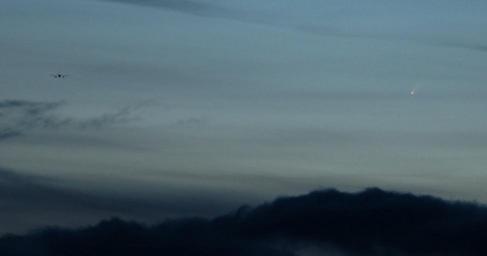 Keywords: Mc airplane.jpg Comet McNaught C/2006 P1 on Jan/7/2007 at 16 27 UTC Image taken in Schaffhausen/Switzerland Photographer Mark Vornhusen 2007-01-07 own assumed Mark Vornhusen C/2006 P1