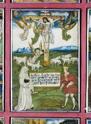 | Keywords: MCC-42054 Veelluik met het martelaarschap van de H. Theodosia (16).jpg Artwork nl Anonymous Gelre nl Middenstuk 1 Theodosia verzoekt toelating tot de gevangenis Rechtsboven een engel met banderol waarop de tekst Ghi sijt verhoert die geve die ghi do bidt heb ick gevestigt mit mijnen gelt die martelie te liden 2 Theodosia wordt bij de magistraat ter verantwoording geroepen Op het tekstbord Desen s alch sal ick mitter hulpen des heren voer s en 3 Theodosia ™s marteling aan de hefboom Op het tekstbord Ic ben bereyd dinc voer iezus christo te liden 4a Theodosia aan de schandpaal 4b Theodosia ™s ledematen worden uitgerekt 5 Allegorische voorstelling Christus aan het kruis met het offerlam op zijn schouders; onder het kruis negen schapen Op de voorgrond links een non rechts koning David met een gouden kroon op zijn hoofd en een herdersstaf met schep in beide handen die hij naar de non uitsteekt; tussen hen in ligt een harp Op het tekstbord suster hoede die scapen dier gedacten in die minne des brudegoms iesus opten berch caluarie 6a Theodosia uit het water gered door twee engelen 6b Vijf nonnen en een vrouw in wereldse kledij bezoeken Theodosia in de gevangenis Op het tekstbord min medes elen in cro Christo den enge w ech Het opschrift op de lijst onder de voorstelling is onleesbaar 7 Theodosia voor de wilde dieren geworpen Op het tekstbord nu suldi bekennen hoe vol si vermogen die god mit pueren herten minnen 8 Onthoofding van Theodosia Op het tekstbord dat ic inren tiit des vreden heb vercregen dat sal ic inden striit nie verliesen 9a Verschijning van Theodosia aan haar ouders Op het tekstbord sieh hoe soet die glorie ist daer du mi af beroeven wolste 9b Begrafenis van Theodosia Een zwevende engel met banderol waarop si heft nu salighe vrocht Aan weerszijden van deze taferelen zijn vrouwelijke heiligen afgebeeld steeds twee aan twee met tussen hen in een geknielde non Op de eerste voorstelling links in plaats van een vrouwelijke heilige Maria met kind Links 10a Madonna op de maansikkel en Fides Opschriften / fides 10b Caritas en Spes Opschriften niet leesbaar 11a Agatha en Dorothea Opschriften aghata / doratea 11b Apollonia met attribuut van Agatha tang waarin in plaats van een tand een borst is geklemd en Euphrosia Opschriften appolonia / effrosia 12a Anatolia en Christina Opschriften anatolia / 12b Victoria en Sophia Opschriften victoria / sophia Rechts 13a Margaretha en Gertrudis Opschriften a gretha / gertrudis 13b Ursula en Walburga Opschriften ursula / 14a Catharina en Barbara Opschriften katrina / barbara 14b Agnes en Prisca Opschriften agneta / priska 15a Cecilia en Cunera Opschriften cecilia / cunera 15b Lucia en Clara Opschriften lucia / clara Binnenzijde linkerluiken 16 Kruisdraging met Veronica en Simon van Cyrene 17 Doornenkroning Rechts een als priester geklede heilige met een kelk in de hand en een knielende non 18 Geseling Rechts een H Bisschop 19 Christus in de Hof van Olijven en de stigmatisatie van de Franciscus 20 Besnijdenis Rechts een reguliere kanunnik en een geknielde vrouw in 16de-eeuwse kledij met de attributen van de H Goedele een lantaarn geflankeerd door een engel met een brandende kaars en een duivel met een blaasbalg; daaronder het opschrift gudila 21 Ontkleding van Christus Rechts een heilige met een boek en een ladder 22 Kruisnageling Rechts de apostel Thomas 23 Christus aan het kruis met Maria Johannes en de drie vrouwen Rechts Antonius 24 Bewening Rechts de apostel Paulus en twee geknielde nonnen 25 Christus treedt de wijnpers Links Augustinus rechts een reguliere kanunnik Binnenzijde rechterluiken 26 Aanbidding der koningen 27 Geboorte van Christus Opschrift gloria in excelsis 28a Visitatie 28b Vier nonnen knielend voor een altaar waarop een drieluik met de Kruisiging Achter hen een priester Boven diens hoofd h ia Rechts daarvan een banderol met eenregelige tekst van een lied adv i g i I Fi Filius dn domini 29 Annunciatie Opschrift ave gratia plena 30 Genadestoel Rechtsonder op de voorgrond knielt een non Op het tekstbord god die alle creatueren gescapen heft en ons mit sin dierbaren bloet verlost heft hi wil ock sin gracie geuen ge eit v an der oude naam van de stichtster-non 31 Christus verschijnt aan Maria 32 Hemelvaart van Christus 33 Kroning van Maria 34 Allegorische voorstelling God de Vader gezeten op een troon met op de trappen die naar de troon voeren links de vijf wijze rechts de vijf dwaze maagden; in het midden een engel boven de hellemond met drie verdoemden Op de banderol in de linkerhand van de engel Gae t of Myt ghi vermadi vermaledijden ; op de banderol in zijn rechterhand coemt ghi gebenedide Op het tekstbord bij de wijze maagden gaet tot der gene daer se te coop is Op het tekstbord bij de dwaze maagden geft ons den olie vor ons lamp Op de banderol aan de onderzijde van de voorstelling rick der hemelen sal worden all fiere maechden Buitenzijde linkerluiken Nr 35 36 en 40 t/m 44 zijn gewijd aan de zeven vallen van Christus De voorstellingen zijn zeer verwant aan zeven houtsneden met dit thema gedrukt op één blad getiteld ˜O mensch betracht dy siben vell Christi und dy siben herzenlaydt Marie ™ Wenen Albertina inv nr 1930-70 Zuid-Duitsland ca 1480; zie Marrow 1979 p 82 89 100 106 131 170 pl VIII 35 Christus ™ val voor de kruisnageling zesde val 36 Kruisoprichting zevende val 37 Allegorische voorstelling Christus als Man van Smarten en gebonden aan de geselpaal houdt een rood koord vast dat verbonden is met een knielende non Tekstrol Christus o dochter vollighet my want ic gepassijt bin voor di wilt mij u hert geven om ewich te leuen Tekstrol non here ic offer u myn hert nu ende inder ewicheit Achter de non zeven kleinere opschriften verwijzend naar zeven deugden elk voorafgegaan door een hand met een geselroede waarvan de eerste en de derde onleesbaar zijn 2 die mel it mildheid ; 4 gehoorsamheijt; 5 wakinge; 6 silencia ; 7 arheyt waarheid 38 Allegorische voorstelling In een ommuurde tuin slaat Christus met een hamer o