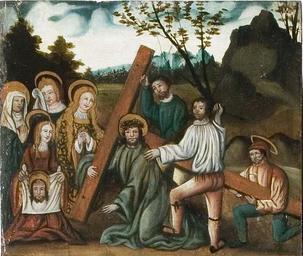 | Keywords: MCC-42054 Veelluik met het martelaarschap van de H. Theodosia (43).jpg Artwork nl Anonymous Gelre nl Middenstuk 1 Theodosia verzoekt toelating tot de gevangenis Rechtsboven een engel met banderol waarop de tekst Ghi sijt verhoert die geve die ghi do bidt heb ick gevestigt mit mijnen gelt die martelie te liden 2 Theodosia wordt bij de magistraat ter verantwoording geroepen Op het tekstbord Desen s alch sal ick mitter hulpen des heren voer s en 3 Theodosia ™s marteling aan de hefboom Op het tekstbord Ic ben bereyd dinc voer iezus christo te liden 4a Theodosia aan de schandpaal 4b Theodosia ™s ledematen worden uitgerekt 5 Allegorische voorstelling Christus aan het kruis met het offerlam op zijn schouders; onder het kruis negen schapen Op de voorgrond links een non rechts koning David met een gouden kroon op zijn hoofd en een herdersstaf met schep in beide handen die hij naar de non uitsteekt; tussen hen in ligt een harp Op het tekstbord suster hoede die scapen dier gedacten in die minne des brudegoms iesus opten berch caluarie 6a Theodosia uit het water gered door twee engelen 6b Vijf nonnen en een vrouw in wereldse kledij bezoeken Theodosia in de gevangenis Op het tekstbord min medes elen in cro Christo den enge w ech Het opschrift op de lijst onder de voorstelling is onleesbaar 7 Theodosia voor de wilde dieren geworpen Op het tekstbord nu suldi bekennen hoe vol si vermogen die god mit pueren herten minnen 8 Onthoofding van Theodosia Op het tekstbord dat ic inren tiit des vreden heb vercregen dat sal ic inden striit nie verliesen 9a Verschijning van Theodosia aan haar ouders Op het tekstbord sieh hoe soet die glorie ist daer du mi af beroeven wolste 9b Begrafenis van Theodosia Een zwevende engel met banderol waarop si heft nu salighe vrocht Aan weerszijden van deze taferelen zijn vrouwelijke heiligen afgebeeld steeds twee aan twee met tussen hen in een geknielde non Op de eerste voorstelling links in plaats van een vrouwelijke heilige Maria met kind Links 10a Madonna op de maansikkel en Fides Opschriften / fides 10b Caritas en Spes Opschriften niet leesbaar 11a Agatha en Dorothea Opschriften aghata / doratea 11b Apollonia met attribuut van Agatha tang waarin in plaats van een tand een borst is geklemd en Euphrosia Opschriften appolonia / effrosia 12a Anatolia en Christina Opschriften anatolia / 12b Victoria en Sophia Opschriften victoria / sophia Rechts 13a Margaretha en Gertrudis Opschriften a gretha / gertrudis 13b Ursula en Walburga Opschriften ursula / 14a Catharina en Barbara Opschriften katrina / barbara 14b Agnes en Prisca Opschriften agneta / priska 15a Cecilia en Cunera Opschriften cecilia / cunera 15b Lucia en Clara Opschriften lucia / clara Binnenzijde linkerluiken 16 Kruisdraging met Veronica en Simon van Cyrene 17 Doornenkroning Rechts een als priester geklede heilige met een kelk in de hand en een knielende non 18 Geseling Rechts een H Bisschop 19 Christus in de Hof van Olijven en de stigmatisatie van de Franciscus 20 Besnijdenis Rechts een reguliere kanunnik en een geknielde vrouw in 16de-eeuwse kledij met de attributen van de H Goedele een lantaarn geflankeerd door een engel met een brandende kaars en een duivel met een blaasbalg; daaronder het opschrift gudila 21 Ontkleding van Christus Rechts een heilige met een boek en een ladder 22 Kruisnageling Rechts de apostel Thomas 23 Christus aan het kruis met Maria Johannes en de drie vrouwen Rechts Antonius 24 Bewening Rechts de apostel Paulus en twee geknielde nonnen 25 Christus treedt de wijnpers Links Augustinus rechts een reguliere kanunnik Binnenzijde rechterluiken 26 Aanbidding der koningen 27 Geboorte van Christus Opschrift gloria in excelsis 28a Visitatie 28b Vier nonnen knielend voor een altaar waarop een drieluik met de Kruisiging Achter hen een priester Boven diens hoofd h ia Rechts daarvan een banderol met eenregelige tekst van een lied adv i g i I Fi Filius dn domini 29 Annunciatie Opschrift ave gratia plena 30 Genadestoel Rechtsonder op de voorgrond knielt een non Op het tekstbord god die alle creatueren gescapen heft en ons mit sin dierbaren bloet verlost heft hi wil ock sin gracie geuen ge eit v an der oude naam van de stichtster-non 31 Christus verschijnt aan Maria 32 Hemelvaart van Christus 33 Kroning van Maria 34 Allegorische voorstelling God de Vader gezeten op een troon met op de trappen die naar de troon voeren links de vijf wijze rechts de vijf dwaze maagden; in het midden een engel boven de hellemond met drie verdoemden Op de banderol in de linkerhand van de engel Gae t of Myt ghi vermadi vermaledijden ; op de banderol in zijn rechterhand coemt ghi gebenedide Op het tekstbord bij de wijze maagden gaet tot der gene daer se te coop is Op het tekstbord bij de dwaze maagden geft ons den olie vor ons lamp Op de banderol aan de onderzijde van de voorstelling rick der hemelen sal worden all fiere maechden Buitenzijde linkerluiken Nr 35 36 en 40 t/m 44 zijn gewijd aan de zeven vallen van Christus De voorstellingen zijn zeer verwant aan zeven houtsneden met dit thema gedrukt op één blad getiteld ˜O mensch betracht dy siben vell Christi und dy siben herzenlaydt Marie ™ Wenen Albertina inv nr 1930-70 Zuid-Duitsland ca 1480; zie Marrow 1979 p 82 89 100 106 131 170 pl VIII 35 Christus ™ val voor de kruisnageling zesde val 36 Kruisoprichting zevende val 37 Allegorische voorstelling Christus als Man van Smarten en gebonden aan de geselpaal houdt een rood koord vast dat verbonden is met een knielende non Tekstrol Christus o dochter vollighet my want ic gepassijt bin voor di wilt mij u hert geven om ewich te leuen Tekstrol non here ic offer u myn hert nu ende inder ewicheit Achter de non zeven kleinere opschriften verwijzend naar zeven deugden elk voorafgegaan door een hand met een geselroede waarvan de eerste en de derde onleesbaar zijn 2 die mel it mildheid ; 4 gehoorsamheijt; 5 wakinge; 6 silencia ; 7 arheyt waarheid 38 Allegorische voorstelling In een ommuurde tuin slaat Christus met een hamer o