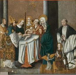 | Keywords: MCC-42054 Veelluik met het martelaarschap van de H. Theodosia (47).jpg Artwork nl Anonymous Gelre nl Middenstuk 1 Theodosia verzoekt toelating tot de gevangenis Rechtsboven een engel met banderol waarop de tekst Ghi sijt verhoert die geve die ghi do bidt heb ick gevestigt mit mijnen gelt die martelie te liden 2 Theodosia wordt bij de magistraat ter verantwoording geroepen Op het tekstbord Desen s alch sal ick mitter hulpen des heren voer s en 3 Theodosia ™s marteling aan de hefboom Op het tekstbord Ic ben bereyd dinc voer iezus christo te liden 4a Theodosia aan de schandpaal 4b Theodosia ™s ledematen worden uitgerekt 5 Allegorische voorstelling Christus aan het kruis met het offerlam op zijn schouders; onder het kruis negen schapen Op de voorgrond links een non rechts koning David met een gouden kroon op zijn hoofd en een herdersstaf met schep in beide handen die hij naar de non uitsteekt; tussen hen in ligt een harp Op het tekstbord suster hoede die scapen dier gedacten in die minne des brudegoms iesus opten berch caluarie 6a Theodosia uit het water gered door twee engelen 6b Vijf nonnen en een vrouw in wereldse kledij bezoeken Theodosia in de gevangenis Op het tekstbord min medes elen in cro Christo den enge w ech Het opschrift op de lijst onder de voorstelling is onleesbaar 7 Theodosia voor de wilde dieren geworpen Op het tekstbord nu suldi bekennen hoe vol si vermogen die god mit pueren herten minnen 8 Onthoofding van Theodosia Op het tekstbord dat ic inren tiit des vreden heb vercregen dat sal ic inden striit nie verliesen 9a Verschijning van Theodosia aan haar ouders Op het tekstbord sieh hoe soet die glorie ist daer du mi af beroeven wolste 9b Begrafenis van Theodosia Een zwevende engel met banderol waarop si heft nu salighe vrocht Aan weerszijden van deze taferelen zijn vrouwelijke heiligen afgebeeld steeds twee aan twee met tussen hen in een geknielde non Op de eerste voorstelling links in plaats van een vrouwelijke heilige Maria met kind Links 10a Madonna op de maansikkel en Fides Opschriften / fides 10b Caritas en Spes Opschriften niet leesbaar 11a Agatha en Dorothea Opschriften aghata / doratea 11b Apollonia met attribuut van Agatha tang waarin in plaats van een tand een borst is geklemd en Euphrosia Opschriften appolonia / effrosia 12a Anatolia en Christina Opschriften anatolia / 12b Victoria en Sophia Opschriften victoria / sophia Rechts 13a Margaretha en Gertrudis Opschriften a gretha / gertrudis 13b Ursula en Walburga Opschriften ursula / 14a Catharina en Barbara Opschriften katrina / barbara 14b Agnes en Prisca Opschriften agneta / priska 15a Cecilia en Cunera Opschriften cecilia / cunera 15b Lucia en Clara Opschriften lucia / clara Binnenzijde linkerluiken 16 Kruisdraging met Veronica en Simon van Cyrene 17 Doornenkroning Rechts een als priester geklede heilige met een kelk in de hand en een knielende non 18 Geseling Rechts een H Bisschop 19 Christus in de Hof van Olijven en de stigmatisatie van de Franciscus 20 Besnijdenis Rechts een reguliere kanunnik en een geknielde vrouw in 16de-eeuwse kledij met de attributen van de H Goedele een lantaarn geflankeerd door een engel met een brandende kaars en een duivel met een blaasbalg; daaronder het opschrift gudila 21 Ontkleding van Christus Rechts een heilige met een boek en een ladder 22 Kruisnageling Rechts de apostel Thomas 23 Christus aan het kruis met Maria Johannes en de drie vrouwen Rechts Antonius 24 Bewening Rechts de apostel Paulus en twee geknielde nonnen 25 Christus treedt de wijnpers Links Augustinus rechts een reguliere kanunnik Binnenzijde rechterluiken 26 Aanbidding der koningen 27 Geboorte van Christus Opschrift gloria in excelsis 28a Visitatie 28b Vier nonnen knielend voor een altaar waarop een drieluik met de Kruisiging Achter hen een priester Boven diens hoofd h ia Rechts daarvan een banderol met eenregelige tekst van een lied adv i g i I Fi Filius dn domini 29 Annunciatie Opschrift ave gratia plena 30 Genadestoel Rechtsonder op de voorgrond knielt een non Op het tekstbord god die alle creatueren gescapen heft en ons mit sin dierbaren bloet verlost heft hi wil ock sin gracie geuen ge eit v an der oude naam van de stichtster-non 31 Christus verschijnt aan Maria 32 Hemelvaart van Christus 33 Kroning van Maria 34 Allegorische voorstelling God de Vader gezeten op een troon met op de trappen die naar de troon voeren links de vijf wijze rechts de vijf dwaze maagden; in het midden een engel boven de hellemond met drie verdoemden Op de banderol in de linkerhand van de engel Gae t of Myt ghi vermadi vermaledijden ; op de banderol in zijn rechterhand coemt ghi gebenedide Op het tekstbord bij de wijze maagden gaet tot der gene daer se te coop is Op het tekstbord bij de dwaze maagden geft ons den olie vor ons lamp Op de banderol aan de onderzijde van de voorstelling rick der hemelen sal worden all fiere maechden Buitenzijde linkerluiken Nr 35 36 en 40 t/m 44 zijn gewijd aan de zeven vallen van Christus De voorstellingen zijn zeer verwant aan zeven houtsneden met dit thema gedrukt op één blad getiteld ˜O mensch betracht dy siben vell Christi und dy siben herzenlaydt Marie ™ Wenen Albertina inv nr 1930-70 Zuid-Duitsland ca 1480; zie Marrow 1979 p 82 89 100 106 131 170 pl VIII 35 Christus ™ val voor de kruisnageling zesde val 36 Kruisoprichting zevende val 37 Allegorische voorstelling Christus als Man van Smarten en gebonden aan de geselpaal houdt een rood koord vast dat verbonden is met een knielende non Tekstrol Christus o dochter vollighet my want ic gepassijt bin voor di wilt mij u hert geven om ewich te leuen Tekstrol non here ic offer u myn hert nu ende inder ewicheit Achter de non zeven kleinere opschriften verwijzend naar zeven deugden elk voorafgegaan door een hand met een geselroede waarvan de eerste en de derde onleesbaar zijn 2 die mel it mildheid ; 4 gehoorsamheijt; 5 wakinge; 6 silencia ; 7 arheyt waarheid 38 Allegorische voorstelling In een ommuurde tuin slaat Christus met een hamer o