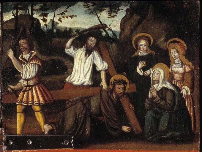 | Keywords: MCC-42054 Veelluik met het martelaarschap van de H. Theodosia (68).jpg  Artwork nl Anonymous Gelre nl Middenstuk 1 Theodosia verzoekt toelating tot de gevangenis Rechtsboven een engel met banderol waarop de tekst Ghi sijt verhoert die geve die ghi do bidt heb ick gevestigt mit mijnen gelt die martelie te liden 2 Theodosia wordt bij de magistraat ter verantwoording geroepen Op het tekstbord Desen s alch sal ick mitter hulpen des heren voer s en 3 Theodosia ™s marteling aan de hefboom Op het tekstbord Ic ben bereyd dinc voer iezus christo te liden 4a Theodosia aan de schandpaal 4b Theodosia ™s ledematen worden uitgerekt 5 Allegorische voorstelling Christus aan het kruis met het offerlam op zijn schouders; onder het kruis negen schapen Op de voorgrond links een non rechts koning David met een gouden kroon op zijn hoofd en een herdersstaf met schep in beide handen die hij naar de non uitsteekt; tussen hen in ligt een harp Op het tekstbord suster hoede die scapen dier gedacten in die minne des brudegoms iesus opten berch caluarie 6a Theodosia uit het water gered door twee engelen 6b Vijf nonnen en een vrouw in wereldse kledij bezoeken Theodosia in de gevangenis Op het tekstbord min medes elen in cro Christo den enge w ech Het opschrift op de lijst onder de voorstelling is onleesbaar 7 Theodosia voor de wilde dieren geworpen Op het tekstbord nu suldi bekennen hoe vol si vermogen die god mit pueren herten minnen 8 Onthoofding van Theodosia Op het tekstbord dat ic inren tiit des vreden heb vercregen dat sal ic inden striit nie verliesen 9a Verschijning van Theodosia aan haar ouders Op het tekstbord sieh hoe soet die glorie ist daer du mi af beroeven wolste 9b Begrafenis van Theodosia Een zwevende engel met banderol waarop si heft nu salighe vrocht Aan weerszijden van deze taferelen zijn vrouwelijke heiligen afgebeeld steeds twee aan twee met tussen hen in een geknielde non Op de eerste voorstelling links in plaats van een vrouwelijke heilige Maria met kind Links 10a Madonna op de maansikkel en Fides Opschriften / fides 10b Caritas en Spes Opschriften niet leesbaar 11a Agatha en Dorothea Opschriften aghata / doratea 11b Apollonia met attribuut van Agatha tang waarin in plaats van een tand een borst is geklemd en Euphrosia Opschriften appolonia / effrosia 12a Anatolia en Christina Opschriften anatolia / 12b Victoria en Sophia Opschriften victoria / sophia Rechts 13a Margaretha en Gertrudis Opschriften a gretha / gertrudis 13b Ursula en Walburga Opschriften ursula / 14a Catharina en Barbara Opschriften katrina / barbara 14b Agnes en Prisca Opschriften agneta / priska 15a Cecilia en Cunera Opschriften cecilia / cunera 15b Lucia en Clara Opschriften lucia / clara Binnenzijde linkerluiken 16 Kruisdraging met Veronica en Simon van Cyrene 17 Doornenkroning Rechts een als priester geklede heilige met een kelk in de hand en een knielende non 18 Geseling Rechts een H Bisschop 19 Christus in de Hof van Olijven en de stigmatisatie van de Franciscus 20 Besnijdenis Rechts een reguliere kanunnik en een geknielde vrouw in 16de-eeuwse kledij met de attributen van de H Goedele een lantaarn geflankeerd door een engel met een brandende kaars en een duivel met een blaasbalg; daaronder het opschrift gudila 21 Ontkleding van Christus Rechts een heilige met een boek en een ladder 22 Kruisnageling Rechts de apostel Thomas 23 Christus aan het kruis met Maria Johannes en de drie vrouwen Rechts Antonius 24 Bewening Rechts de apostel Paulus en twee geknielde nonnen 25 Christus treedt de wijnpers Links Augustinus rechts een reguliere kanunnik Binnenzijde rechterluiken 26 Aanbidding der koningen 27 Geboorte van Christus Opschrift gloria in excelsis 28a Visitatie 28b Vier nonnen knielend voor een altaar waarop een drieluik met de Kruisiging Achter hen een priester Boven diens hoofd h ia Rechts daarvan een banderol met eenregelige tekst van een lied adv i g i I Fi Filius dn domini 29 Annunciatie Opschrift ave gratia plena 30 Genadestoel Rechtsonder op de voorgrond knielt een non Op het tekstbord god die alle creatueren gescapen heft en ons mit sin dierbaren bloet verlost heft hi wil ock sin gracie geuen ge eit v an der oude naam van de stichtster-non 31 Christus verschijnt aan Maria 32 Hemelvaart van Christus 33 Kroning van Maria 34 Allegorische voorstelling God de Vader gezeten op een troon met op de trappen die naar de troon voeren links de vijf wijze rechts de vijf dwaze maagden; in het midden een engel boven de hellemond met drie verdoemden Op de banderol in de linkerhand van de engel Gae t of Myt ghi vermadi vermaledijden ; op de banderol in zijn rechterhand coemt ghi gebenedide Op het tekstbord bij de wijze maagden gaet tot der gene daer se te coop is Op het tekstbord bij de dwaze maagden geft ons den olie vor ons lamp Op de banderol aan de onderzijde van de voorstelling rick der hemelen sal worden all fiere maechden Buitenzijde linkerluiken Nr 35 36 en 40 t/m 44 zijn gewijd aan de zeven vallen van Christus De voorstellingen zijn zeer verwant aan zeven houtsneden met dit thema gedrukt op één blad getiteld ˜O mensch betracht dy siben vell Christi und dy siben herzenlaydt Marie ™ Wenen Albertina inv nr 1930-70 Zuid-Duitsland ca 1480; zie Marrow 1979 p 82 89 100 106 131 170 pl VIII 35 Christus ™ val voor de kruisnageling zesde val 36 Kruisoprichting zevende val 37 Allegorische voorstelling Christus als Man van Smarten en gebonden aan de geselpaal houdt een rood koord vast dat verbonden is met een knielende non Tekstrol Christus o dochter vollighet my want ic gepassijt bin voor di wilt mij u hert geven om ewich te leuen Tekstrol non here ic offer u myn hert nu ende inder ewicheit Achter de non zeven kleinere opschriften verwijzend naar zeven deugden elk voorafgegaan door een hand met een geselroede waarvan de eerste en de derde onleesbaar zijn 2 die mel it mildheid ; 4 gehoorsamheijt; 5 wakinge; 6 silencia ; 7 arheyt waarheid 38 Allegorische voorstelling In een ommuurde tuin slaat Christus met een hamer 