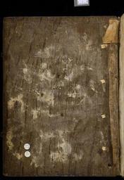 | Keywords: MCC-61050 Evangeliarium (Lebuïnuscodex) (2).jpg Artwork nl Anonymous Noordoost-Frankrijk Anonymous Rijnland Anonymous Maasland nl De kern van de boekband van de Lebuïnuscodex wordt gevormd door twee eikenhouten platten De rug en het achterplat zijn overtrokken met zeemleer Het voorplat is rijkelijk versierd met verguld zilversmeedwerk reliëfs van walrustand en verscheidene stenen De compositie van de bekleding van het voorplat wordt bepaald door een verguld zilveren filigraankruis Aan de uiteinden van de kruisarmen bevinden zich vierpassen met overhoeks vierkant eveneens met filigraan gedecoreerd Hiervan zijn er slechts twee bewaard gebleven en wel die aan de verticale kruisarmen Zij bevatten tevens nog de oorspronkelijke versiering bestaande uit een filigraanmedaillon met een pseudo-camee van respectievelijk een mannen- en een vrouwenhoofd in profiel Het snijpunt van het kruis wordt ingenomen door een ver vooruitstekend Bacchuskopje in chalcedoon te herkennen aan de kleine druiventrosjes in zijn haartooi Het kopje is gevat in een filigraanmedaillon welke op zijn beurt weer is geplaatst op een vierpas van filigraanwerk Op elk van de kruisarmen bevindt zich een ovale steen 'en cabochon' op een medaillon met filigraan Het filigraanwerk van kruis en sierstukken is in de vorm van visblazen In de ruimten tussen de kruisarmen zijn rechthoekige reliëfs van walrustand aangebracht met de vier evangelisten en hun symbool De reliëfs hebben de volgende afmetingen H 10 0 x B 5 5 cm Van links boven naar rechts onder betreft het Mattheus met de engel Johannes met de adelaar Marcus met de gevleugelde leeuw en Lucas met de gevleugelde os De figuren zijn paarsgewijs als elkaars spiegelbeeld ten opzichte van de middenas geplaatst Mattheus en Johannes zitten vrijwel geheel frontaal terwijl Marcus en Lucas meer in profiel zijn afgebeeld Qua opbouw verschillen de vier reliëfs nauwelijks van elkaar Binnen een rand van vierlobbige blaadjes verheffen zich twee zuilen met een basis een kapiteel en een dekplaat Hierop rust een rondboog geflankeerd door twee torens en afgedekt met een fronton dat boven Mattheus en Johannes boogvormig en boven Marcus en Lucas driehoekig is Onder deze overhuiving zitten de evangelisten gekleed in een lang gewaad en mantel met gekruiste benen aan een lessenaar hun blote voeten rustend op een bankje Allen zijn baardeloos en voorzien van een nimbus Voorts houden ze een pen in hun rechterhand terwijl hun linker op een boek ligt of gebarend is opgeheven Boven elk van de evangelisten verschijnt in de opening van het fronton zijn symbool met een spreukband Dit rijkelijk gedecoreerde middenveld wordt omlijst door sierbanden van verguld koper De opbouw van de sierlijsten is steeds dezelfde een opstaande smalle band die op regelmatige afstanden is voorzien van holten met aan weerszijden een brede strook voorzien van een gestanst motief Aan de lange zijden van de boekband bestaat het motief uit palmetten aan de korte zijden uit rozetten Van deze laatstgenoemde stroken ontbreekt steeds de buitenste rand Bij alle stroken met palmettenmotief wijzen de palmetten naar links met uitzondering van de buitenste strook rechtsboven die het motief in tegengestelde richting toont Verguld zilveren rozetten op de hoeken van het voorplat omgeven door een smalle rand van filigraanwerk met cirkelmotief en bekroond met een 'en cabochon' gezette steen completeren het geheel Van de rozet links onder ontbreekt de steen en is slechts de buitenste rand over Aan de voorzijde van de boekband bevinden zich nog de rudimenten van twee sluitingen between u'825' u'1000' u'1150' u'850' u'1199' u'1199' nl perkament eikenhout zilver goud koper walrustand chalcedoon glas leer Size 35 5 26 0 cm nl Hoogte 35 5cm Breedte 26 0cm Diepte 13 5cm Institution Museum Catharijneconvent object history exhibition history credit line nl Foto Museum Catharijneconvent Utrecht foto HetFotoAtelier Peter Rothengatter accession number Object number 61050 Inventory number ABM h1 place of creation https //www catharijneconvent nl/adlib/61050/ View this work on the website of Museum Catharijneconvent Museum Catharijneconvent Cc-zero <gallery> File MCC-61050_Evangeliarium_Lebuïnuscodex_ 11 jpg File MCC-61050_Evangeliarium_Lebuïnuscodex_ 172 jpg File MCC-61050_Evangeliarium_Lebuïnuscodex_ 212 jpg File MCC-61050_Evangeliarium_Lebuïnuscodex_ 61 jpg File MCC-61050_Evangeliarium_Lebuïnuscodex_ 12 jpg File MCC-61050_Evangeliarium_Lebuïnuscodex_ 213 jpg File MCC-61050_Evangeliarium_Lebuïnuscodex_ 56 jpg File MCC-61050_Evangeliarium_Lebuïnuscodex_ 232 jpg File MCC-61050_Evangeliarium_Lebuïnuscodex_ 93 jpg File MCC-61050_Evangeliarium_Lebuïnuscodex_ 99 jpg File MCC-61050_Evangeliarium_Lebuïnuscodex_ 184 jpg File MCC-61050_Evangeliarium_Lebuïnuscodex_ 64 jpg File MCC-61050_Evangeliarium_Lebuïnuscodex_ 299 jpg File MCC-61050_Evangeliarium_Lebuïnuscodex_ 86 jpg File MCC-61050_Evangeliarium_Lebuïnuscodex_ 260 jpg File MCC-61050_Evangeliarium_Lebuïnuscodex_ 159 jpg File MCC-61050_Evangeliarium_Lebuïnuscodex_ 247 jpg File MCC-61050_Evangeliarium_Lebuïnuscodex_ 180 jpg File MCC-61050_Evangeliarium_Lebuïnuscodex_ 121 jpg File MCC-61050_Evangeliarium_Lebuïnuscodex_ 315 jpg File MCC-61050_Evangeliarium_Lebuïnuscodex_ 284 jpg File MCC-61050_Evangeliarium_Lebuïnuscodex_ 33 jpg File MCC-61050_Evangeliarium_Lebuïnuscodex_ 44 jpg File MCC-61050_Evangeliarium_Lebuïnuscodex_ 258 jpg File MCC-61050_Evangeliarium_Lebuïnuscodex_ 237 jpg File MCC-61050_Evangeliarium_Lebuïnuscodex_ 20 jpg File MCC-61050_Evangeliarium_Lebuïnuscodex_ 220 jpg File MCC-61050_Evangeliarium_Lebuïnuscodex_ 279 jpg File MCC-61050_Evangeliarium_Lebuïnuscodex_ 183 jpg File MCC-61050_Evangeliarium_Lebuïnuscodex_ 60 jpg File MCC-61050_Evangeliarium_Lebuïnuscodex_ 166 jpg File MCC-61050_Evangeliarium_Lebuïnuscodex_ 97 jpg File MCC-61050_Evangeliarium_Lebuïnuscodex_ 71 jpg File MCC-61050_Evangeliarium_Lebuïnuscodex_ 132 jpg File MCC-61050_Evangeliarium_Lebuïnus
